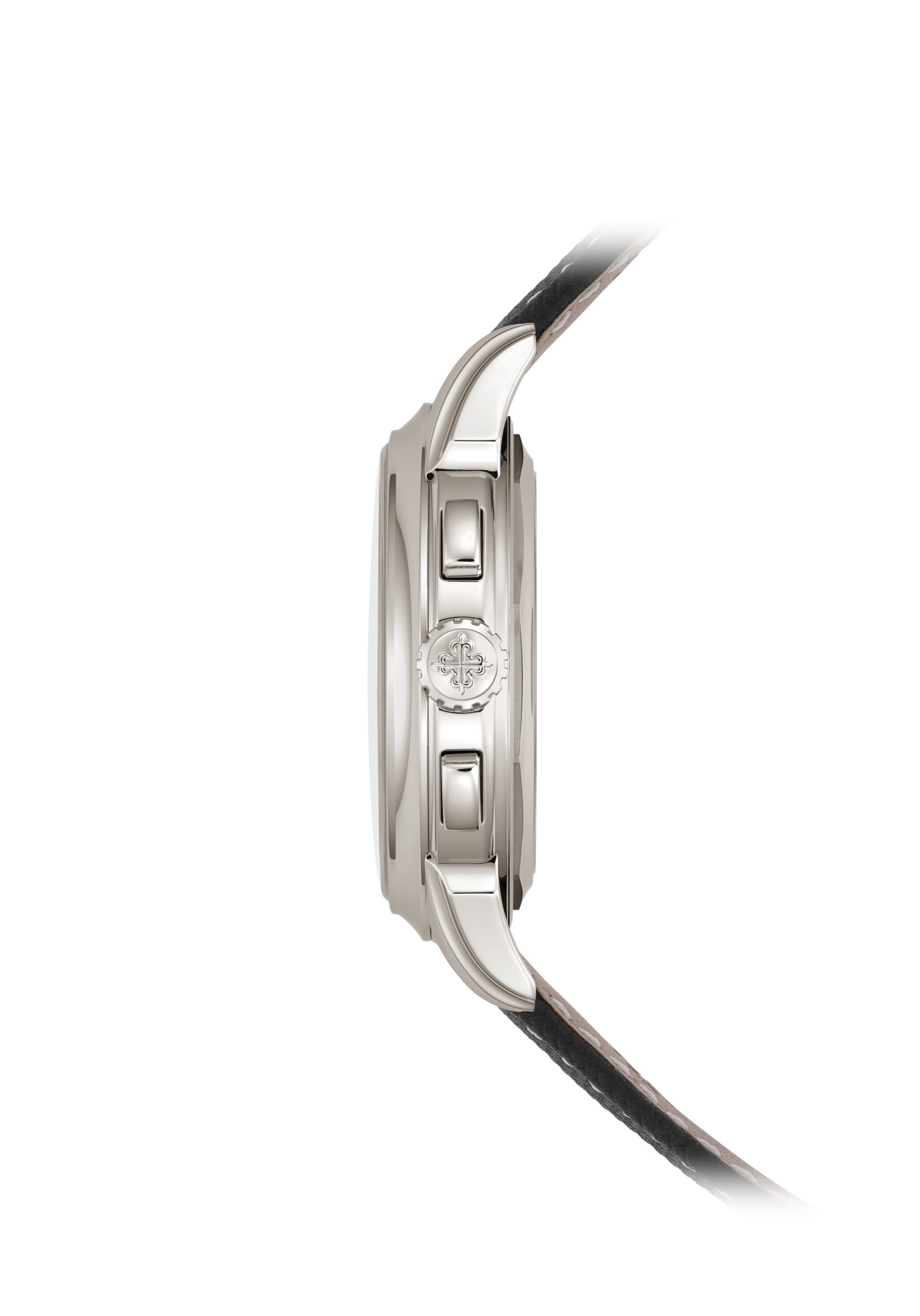 Patek Philippe rivisita il suo cronografo con calendario perpetuo 5270 in una cassa in platino arricchita da una lunetta concava, che incornicia un quadrante laccato grigio antracite con finitura soleil e bordo sfumato nero. Questo segnatempo dall’estetica sportiva è animato da un capolavoro dell’orologeria meccanica: il calibro CH 29-535 PS Q, che combina una costruzione tradizionale con sei innovazioni brevettate legate al cronografo.