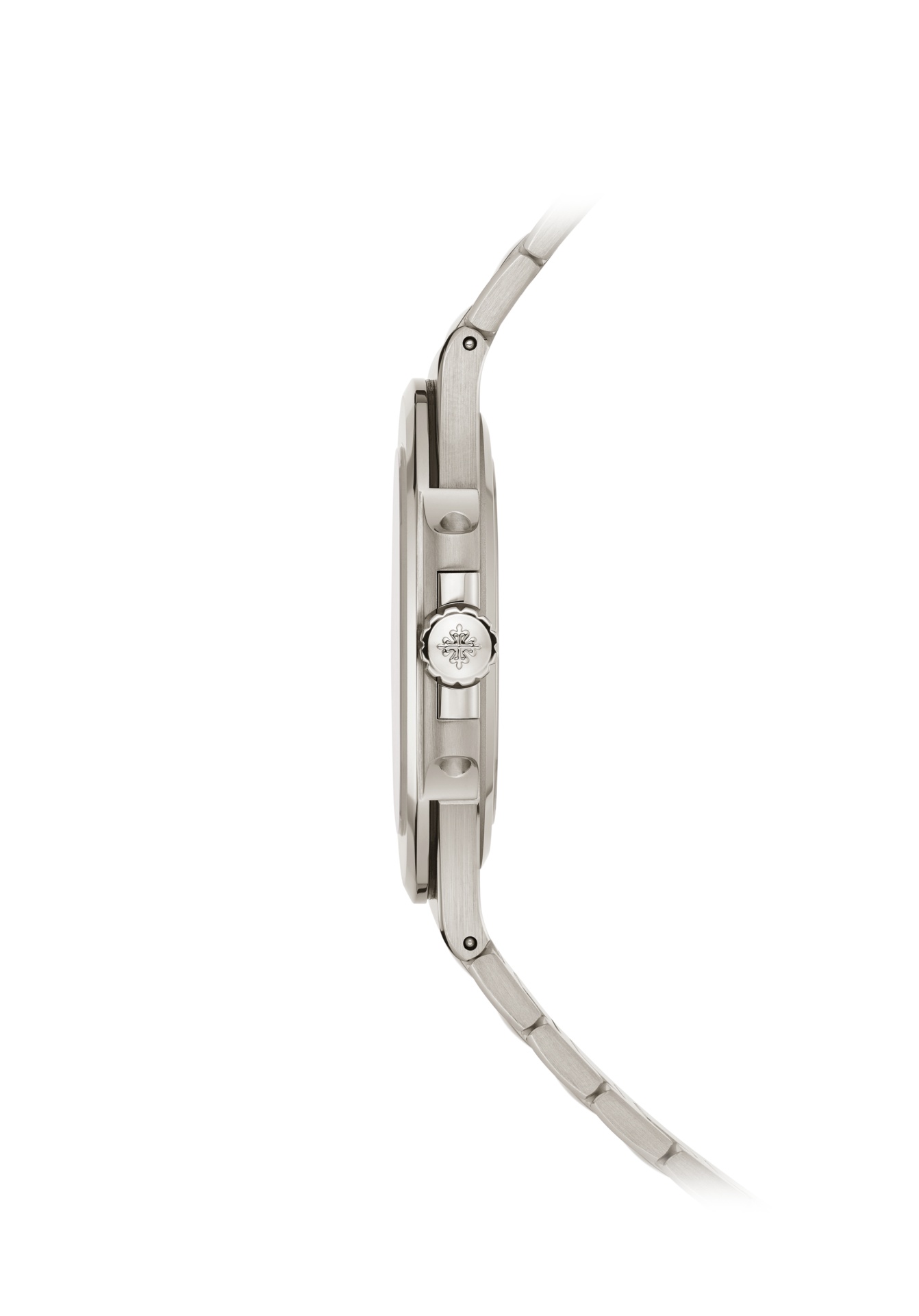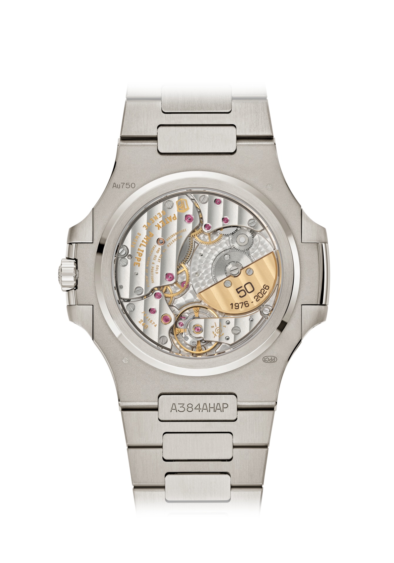 In occasione del 50° anniversario della collezione, Patek Philippe rivisita il design del Nautilus con questo segnatempo caratterizzato da una cassa ultrapiatta in oro bianco che incornicia un quadrante blu con finitura a raggi di sole, su cui spicca l'iconico motivo a rilievo orizzontale. L'orologio è animato dal calibro 240 a carica automatica ultrapiatto ed è proposto in un'edizione limitata a 2.000 esemplari.