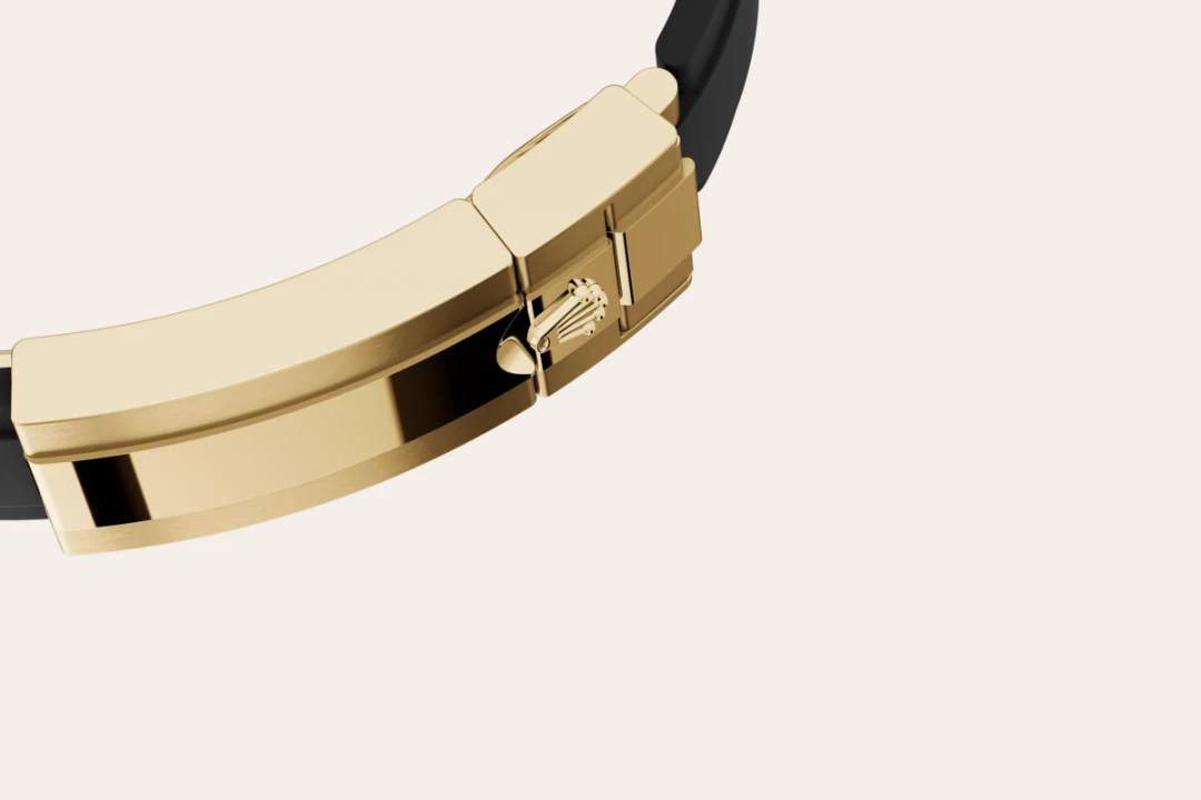 Le declinazioni in oro 18 ct del Cosmograph Daytona con lunetta Cerachrom sono disponibili con bracciale Oysterflex. Sviluppato da Rolex e brevettato, questo bracciale riesce a coniugare come mai prima d’ora la robustezza di un bracciale metallico con il comfort di un bracciale in elastomero. Infatti, è costituito di due lame metalliche sagomate e flessibili – una in ognuna delle due parti del bracciale – rivestite di elastomero nero ad alte prestazioni. Per un comfort ottimale, il bracciale Oysterflex è dotato di “cuscini” laterali sulla superficie interna, e del fermaglio di sicurezza Oysterlock che previene qualsiasi apertura involontaria. È possibile regolare la lunghezza del bracciale mediante l’ingegnoso sistema di allungamento Rolex Glidelock.