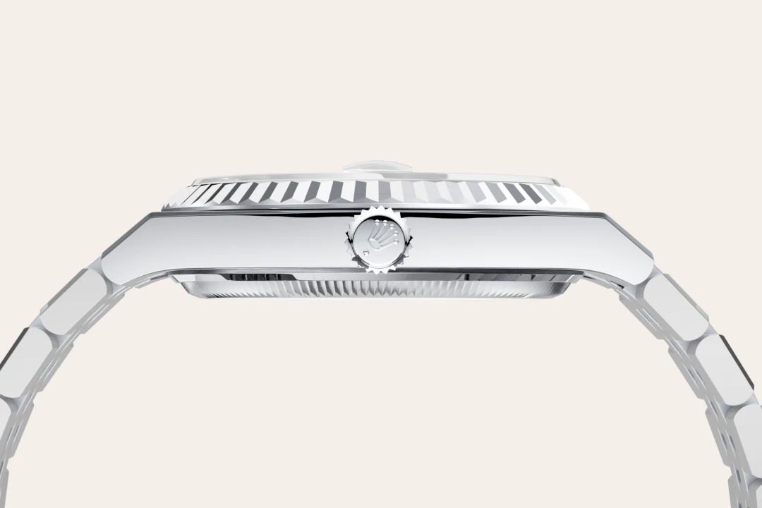 La lunetta zigrinata è un tratto distintivo degli orologi Rolex. La lunetta zigrinata dell’Oyster aveva in origine una funzione: serviva ad avvitarla alla cassa, contribuendo così a garantire l’impermeabilità dell’orologio. La zigrinatura era, di conseguenza, l’esatta riproduzione di quella del fondello che, per le stesse ragioni, veniva avvitato alla cassa con degli appositi strumenti Rolex. Col tempo la zigrinatura si è trasformata in un elemento estetico, un segno distintivo di Rolex che per questo Land-Dweller 36 è disponibile in platino.