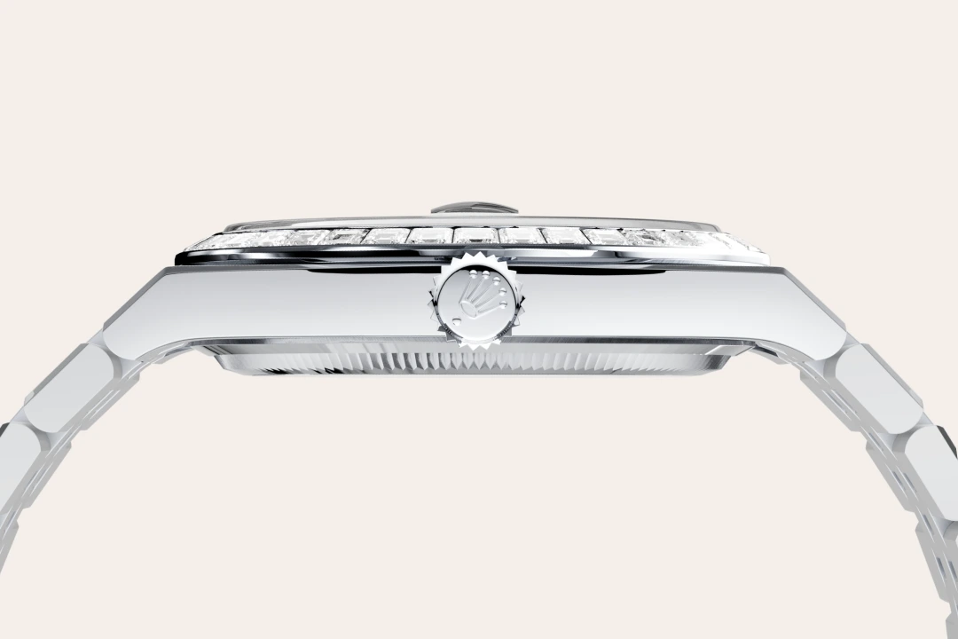 Come dei veri e propri scultori, gli incastonatori incidono il materiale per conferire alla sede a cui è destinata la pietra preziosa la forma migliore per poterla alloggiare. Con il savoir-faire proprio dei gioiellieri, inseriscono poi la pietra, allineandola meticolosamente con le altre e fissandola sul suo supporto in oro o in platino. La fama dei lavori di incastonatura Rolex non deriva solo dalle caratteristiche intrinseche delle pietre stesse, ma è anche il frutto di numerosi altri criteri: la tenuta perfetta delle gemme, il loro allineamento preciso in altezza, il loro orientamento e la loro posizione, l’estetica e la regolarità dell’incastonatura e infine la finitura dei granelli di fissaggio. Una scintillante sinfonia che impreziosisce il segnatempo per incantare chi lo indossa.