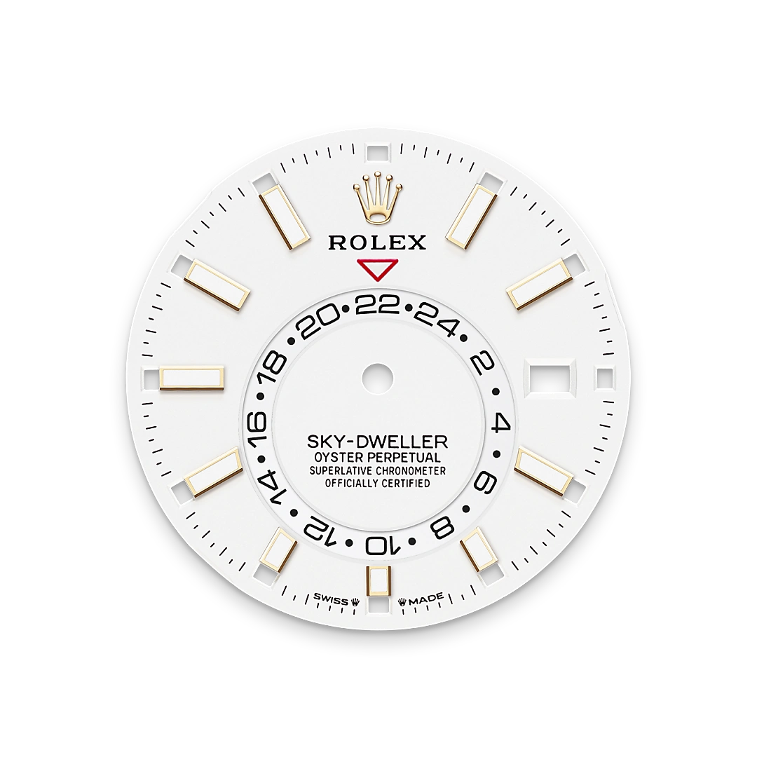 La lunetta zigrinata è un tratto distintivo degli orologi Rolex. La lunetta zigrinata dell’Oyster aveva in origine una funzione: serviva ad avvitarla alla cassa, contribuendo così a garantire l’impermeabilità dell’orologio. La zigrinatura era, di conseguenza, l’esatta riproduzione di quella del fondello che, per le stesse ragioni, veniva avvitato alla cassa con degli appositi strumenti Rolex. Col tempo la zigrinatura si è trasformata in un elemento estetico, un segno distintivo di Rolex disponibile soltanto nelle preziose versioni in oro. Lo Sky-Dweller dispone di un meccanismo di interazione tra la lunetta girevole, la corona di carica e il movimento: il sistema Ring Command, che permette a chi indossa l’orologio di selezionare di volta in volta le funzioni e di regolarle in modo semplice, rapido e sicuro.