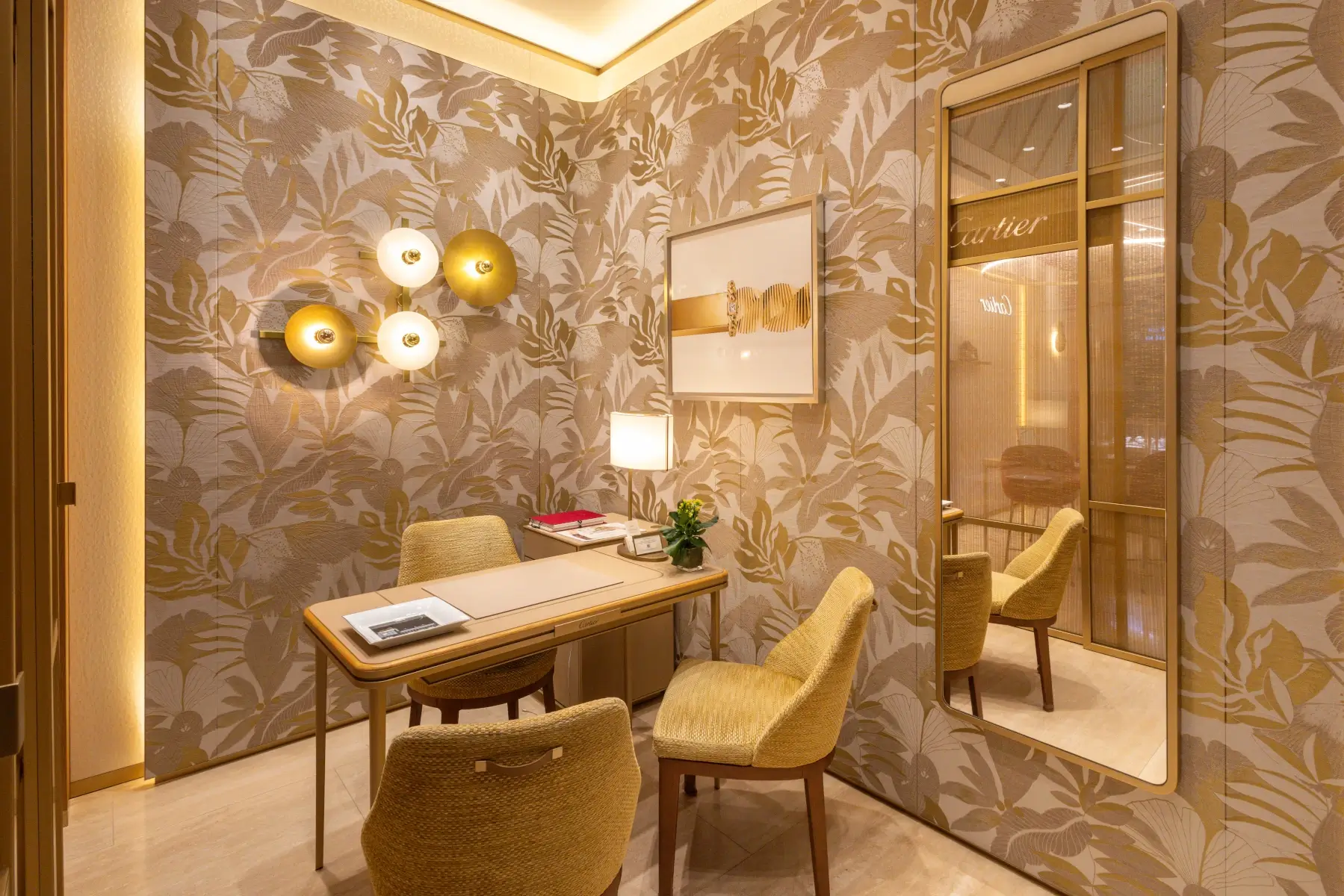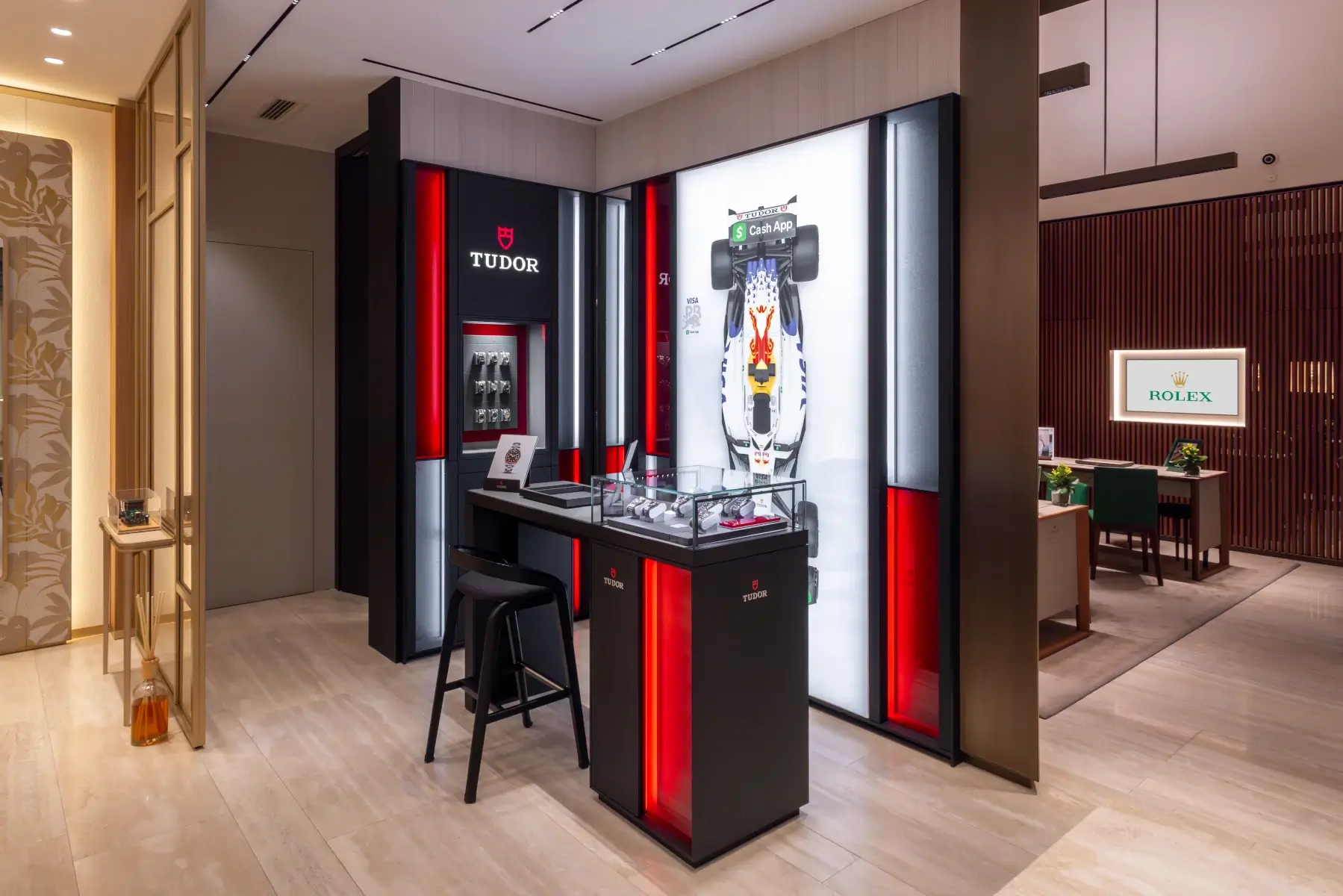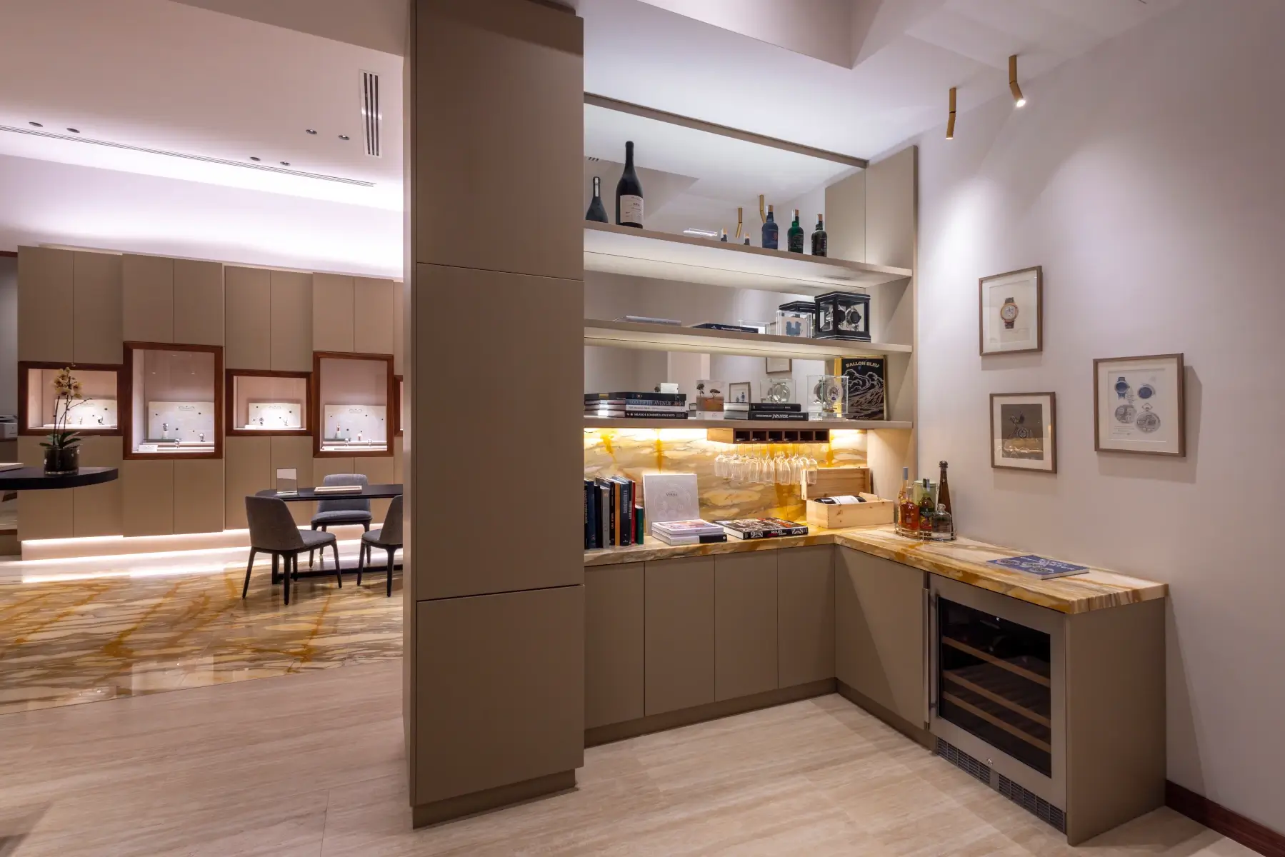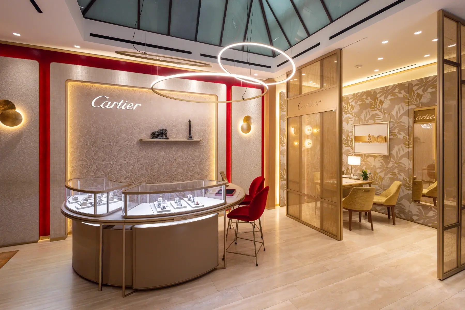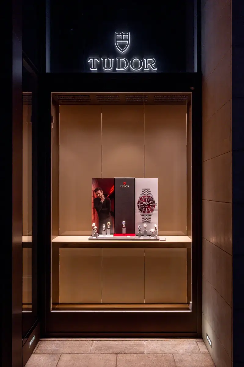 Easily recognizable by its imposing windows and high ceilings, the shop extends over a space of approximately 120 m2 and is characterized by two large open-space exhibition areas dedicated to the sale of the Rolex, Cartier, Tudor and Pomellato jewelery brands.