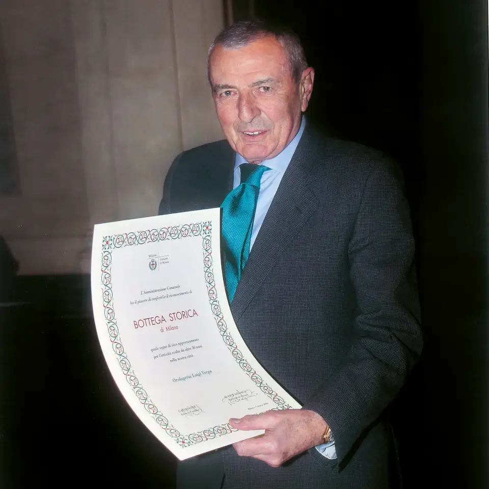 The Verga story moves on to 1997 which marks another important moment in the family's history: the shop in Via Mazzini is recognized among the Historic Shops of Milan, receiving a plaque which consecrates its entrance and which is still present in the Boutique today. In the same year, fifty years after the first opening, a new shop was inaugurated located in Corso Vercelli, one of the most elegant streets in Milan.