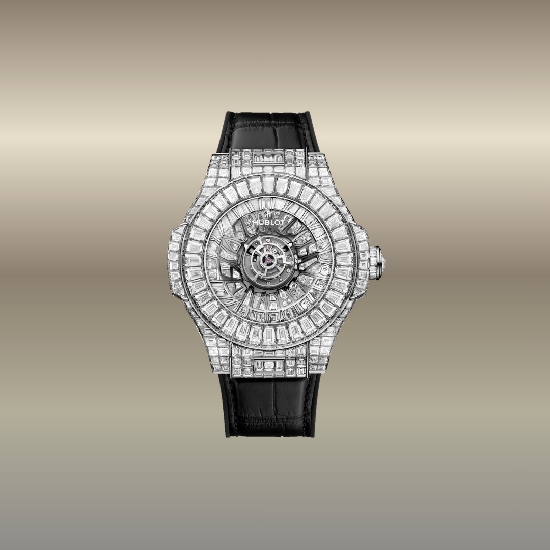 È un orologio di altissima gioielleria firmato Hublot, pensato come pezzo esclusivo da collezione. Il Big Bang Impact One Million unisce orologeria e lusso estremo: realizzato in oro bianco 18K e interamente decorato con centinaia di diamanti, presenta un tourbillon centrale e un design tridimensionale che esalta tecnica, luce e prestigio. È più un’opera d’arte che un semplice orologio, simbolo di eccellenza e innovazione.