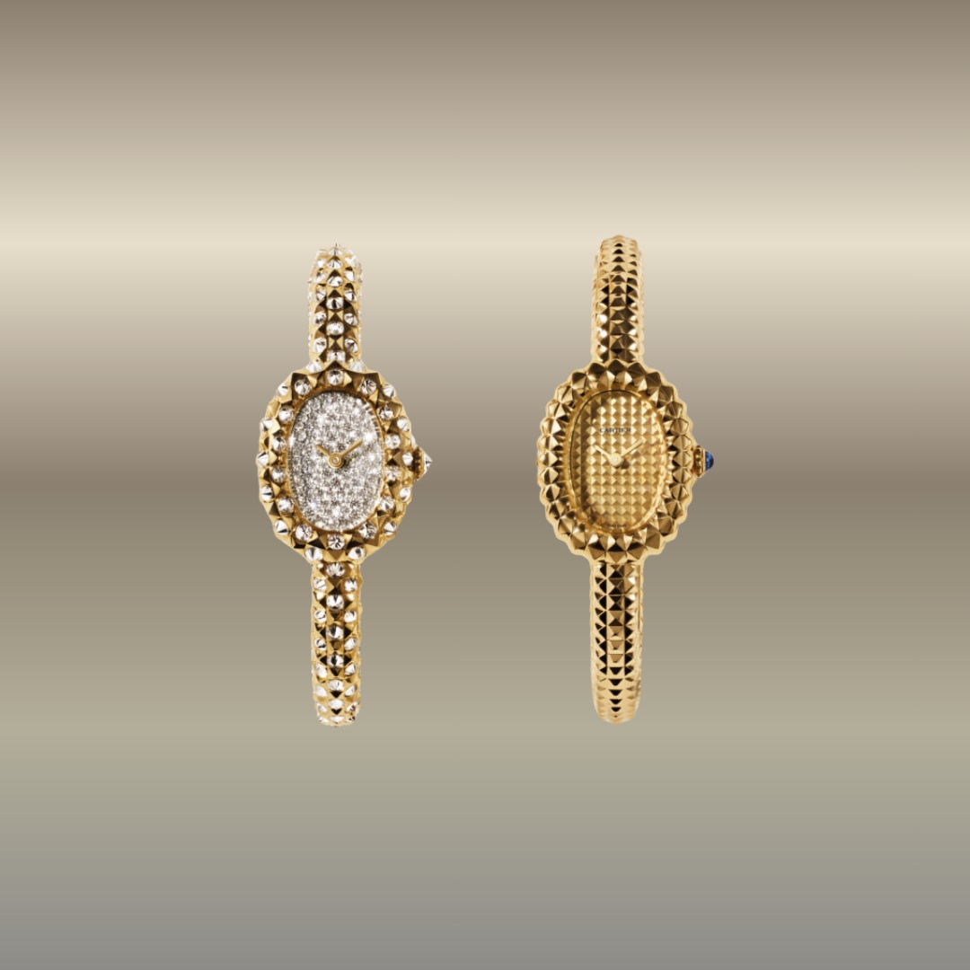 Accanto alla versione in oro giallo, sono proposte varianti con diamanti, dove le incastonature su cassa e quadrante creano giochi di luce. Le dimensioni restano contenute e il movimento al quarzo ne conferma la natura di orologio-gioiello.