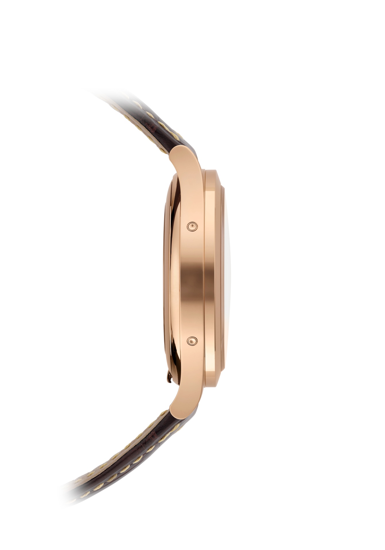 Oro rosa. Diametro: 38,5 mm. Spessore: 11,2 mm. Impermeabile fino a 30 metri. Fondello in vetro zaffiro.