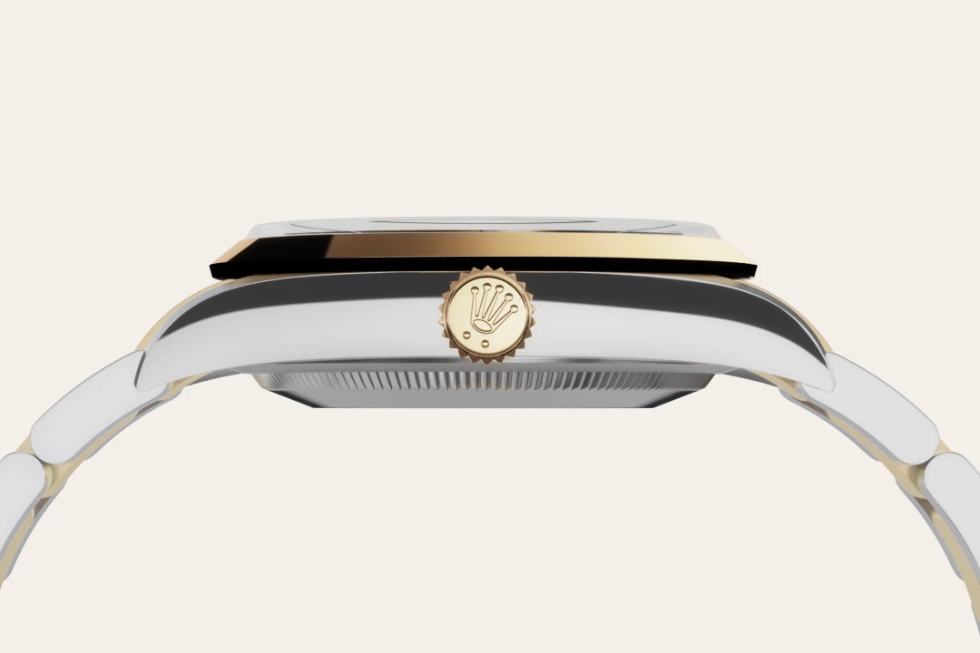 Gold is coveted for its lustre and nobility. Steel reinforces strength and reliability. Together, they harmoniously combine the best of their properties. A true Rolex signature, Rolesor has featured on Rolex models since the early 1930s, and was trademarked as a name in 1933. It is one of the prominent pillars of the Oyster Perpetual collection.