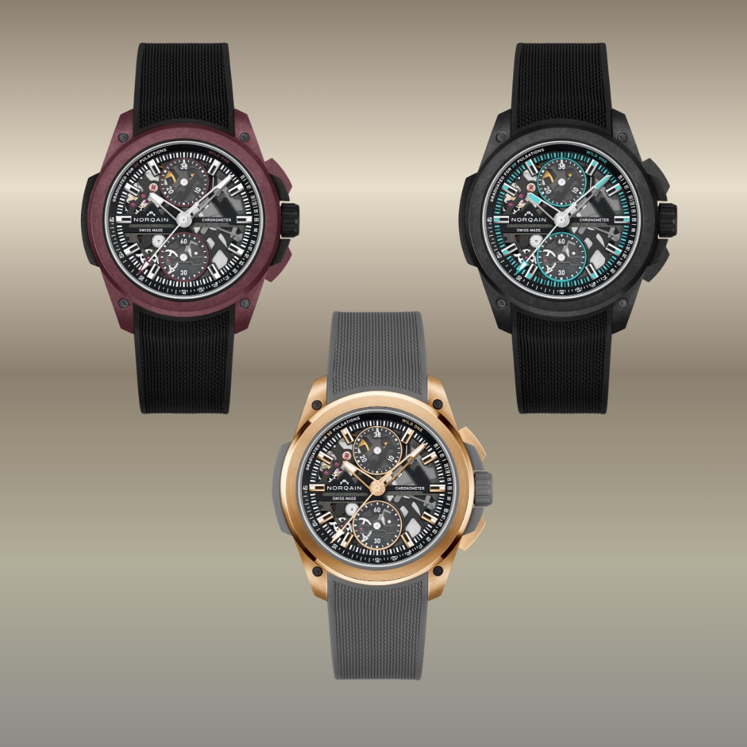 NORQAIN presenta una nuova serie di creazioni che esprimono appieno il suo spirito audace e contemporaneo, unendo innovazione tecnica e forte identità estetica. Dal Freedom Chrono Enjoy Life “Sprinkles”, caratterizzato da un quadrante giocoso e simbolico, al Wild ONE Skeleton evoluto in versione cronografo flyback, fino al Wild ONE Skeleton X-Lite, spinto ai massimi livelli di leggerezza e tecnologia, la Maison continua a ridefinire i propri codici.