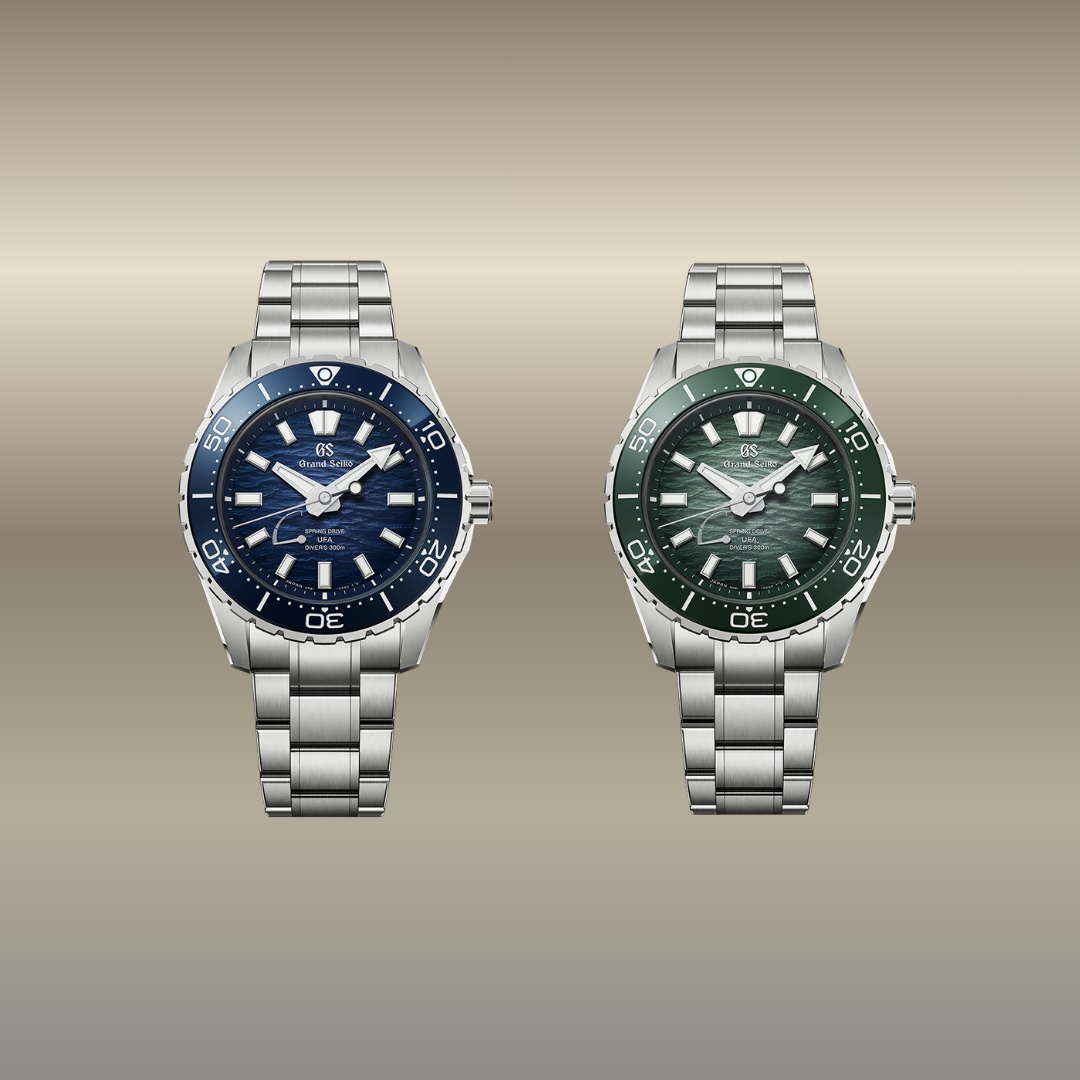 Gli SLGB023 e SLGB025 della Evolution 9 Collection di Grand Seiko reinterpretano il celebre quadrante Ushio, ispirato alle maree che circondano l’arcipelago giapponese. Il motivo ondulato, valorizzato da una raffinata sfumatura, garantisce grande profondità visiva ed eccellente leggibilità, firma dei diver Grand Seiko. L’SLGB023 con quadrante verde richiama la quiete delle acque costiere poco profonde, mentre l’SLGB025 con quadrante blu evoca l’immensità del mare e la luce che penetra negli abissi. Insieme celebrano la forza e la bellezza dell’oceano giapponese.
